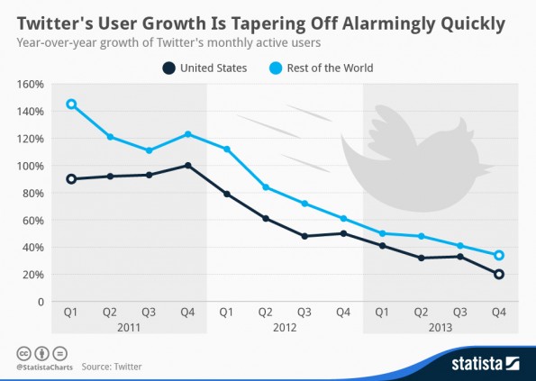 Hace sólo tres años, Twitter crecía en todo el mundo más de un 140% anual en número de usuarios.
