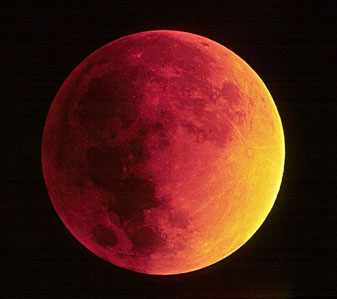 Los eclipses totales de Luna se producen cuando hay un alineamiento casi perfecto entre el Sol, la Tierra y la Luna, al proyectar nuestro planeta su sombra sobre el satélite cuando está en fase de Luna llena (el último se produjo el 10 de diciembre de 2011). Sin embargo, el satélite natural no desaparece de la vista, sino que se tiñe de rojo. Este proceso, que parece mágico, tiene una explicación científica: está relacionado con el reflejo del Sol en la atmósfera terrestre. Ésta, que se extiende unos 80 kilómetros más allá del diámetro terrestre, actúa como una lente desviando la luz solar, al tiempo que filtra eficazmente sus componentes azules dejando pasar solo la luz roja.