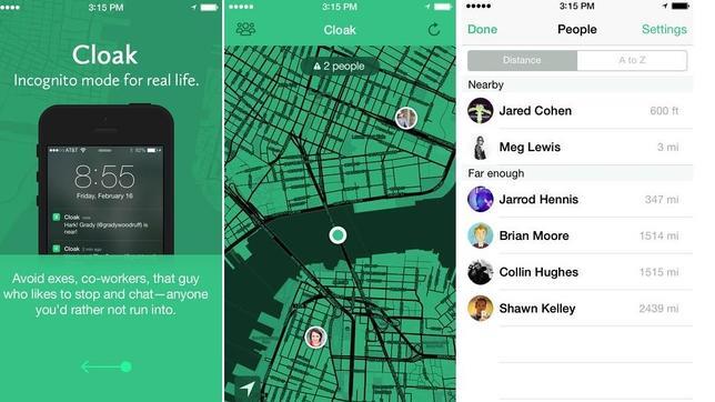 Cloak se basa en el motor de localización de Foursquare e Instagram para indicar al usuario dónde están sus contactos y, así, poder esquivarles y evitar un inesperado encuentro. La aplicación está disponible para iOS y permite al usuario indicar qué contactos desea no encontrarse para recibir notificaciones cuando se aproximen a él dentro de un cierto radio.