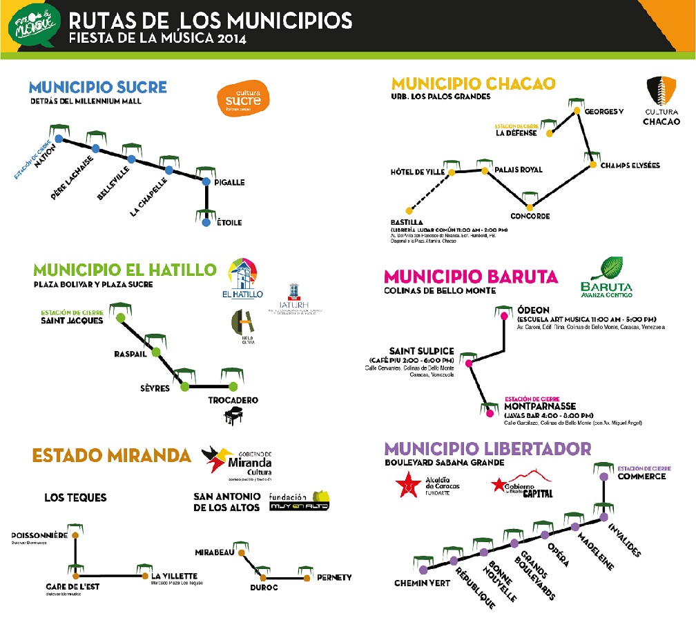 El 7 de junio se llevará a cabo en los cinco (5) municipios de Caracas la Fiesta de la Música, un evento que reúne a más de 900 músicos de más de 160 agrupaciones, que tocarán en circuitos musicales situados en Baruta, Chacao, El Hatillo, Libertador, Sucre y Los Teques más San Antonio en Miranda.