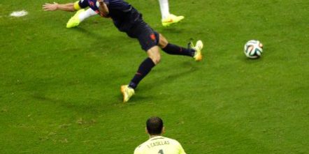 GOAL! Incredible stuff at the Arena Fonte Nova as the Dutch go further ahead! Iker Casillas miscontrols and Van Persie pounces, takes a touch and pokes home.