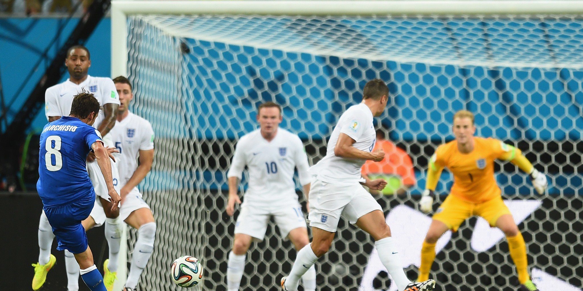 MANAUS, BRAZIL – JUNE 14: Claudio Marchisio of Italy shoots and scores his team’s first goal during the 2014 FIFA World Cup Brazil Group D match between England and Italy at Arena Amazonia on June 14, 2014 in Manaus, Brazil. (Photo by Christopher Lee/Getty Images)