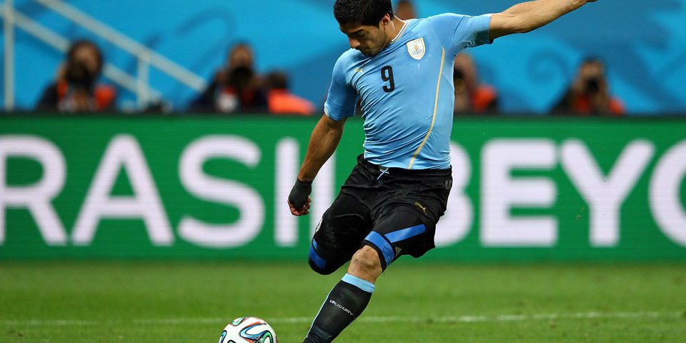 SAO PAULO, BRAZIL – JUNE 19: Luis Suarez of Uruguay shoots and scores his team’s second goal during the 2014 FIFA World Cup Brazil Group D match between Uruguay and England at Arena de Sao Paulo on June 19, 2014 in Sao Paulo, Brazil. (Photo by Julian Finney/Getty Images)