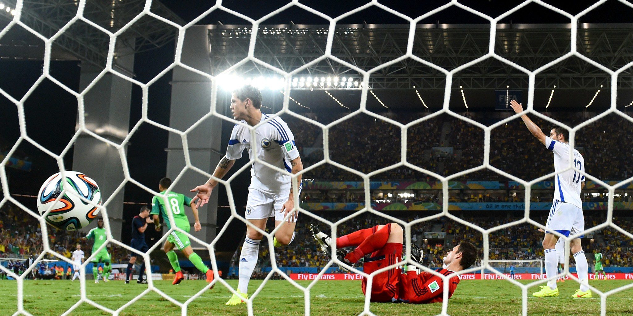 Peter Odemwingie of Nigeria scores his team’s first goal past Asmir Begovic of Bosnia and Herzegovina