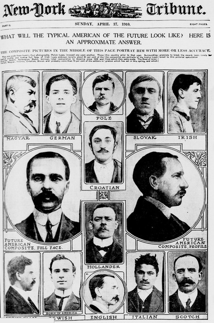 En abril de 1910 en la portada del periódico ‘New York Tribune’ se publicó un retrato colectivo de un hombre que mostraba a los lectores qué aspecto tendría un estadounidense en el futuro. La imagen fue creada a partir de 24 retratos de hombres de diferentes nacionalidades que habían emigrado a Estados Unidos desde 1820 o vivían en el país en el momento de la publicación del artículo.
