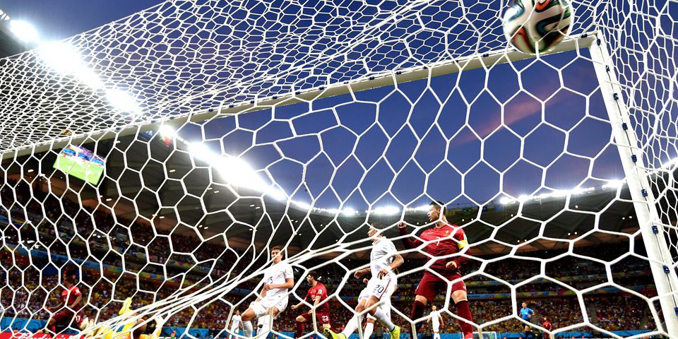 MANAUS, BRAZIL – JUNE 22: Nani (1st L) of Portugal scores his team’s first goal during the 2014 FIFA World Cup Brazil Group G match between USA and Portugal at Arena Amazonia on June 22, 2014 in Manaus, Brazil. (Photo by Stuart Franklin – FIFA/FIFA via Getty Images)
