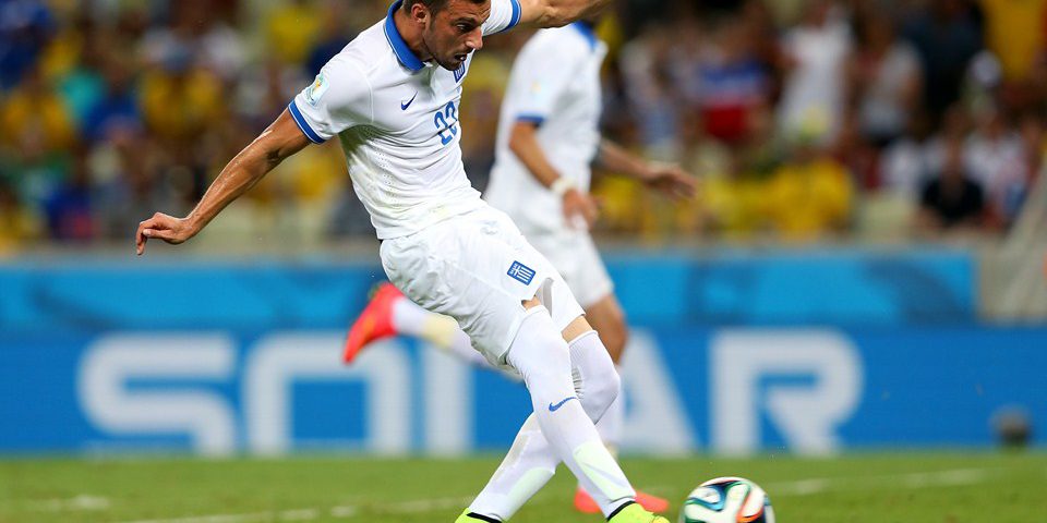 FORTALEZA, BRAZIL – JUNE 24: Andreas Samaris of Greece scores his team’s first goal during the 2014 FIFA World Cup Brazil Group C match between Greece and Cote D’Ivoire at Estadio Castelao on June 24, 2014 in Fortaleza, Brazil. (Photo by Alex Livesey – FIFA/FIFA via Getty Images)