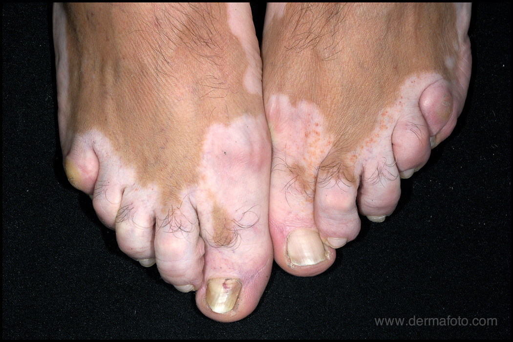 Estas manchas se presentan por lo general con límites precisos, en número variable, con tendencia a la simetría, predominando sobre la cara dorsal de los dedos, la cara anterior de las piernas, codos, rodillas y también, en párpados, boca, y nariz. Nadie está inmune de padecerla. Los registros informan que afecta a todas las razas y sexo por igual, aunque predomina ligeramente entre las mujeres. Hay más de 100 millones de personas en el mundo que tienen la enfermedad, es decir alrededor del 2% de la población mundial.