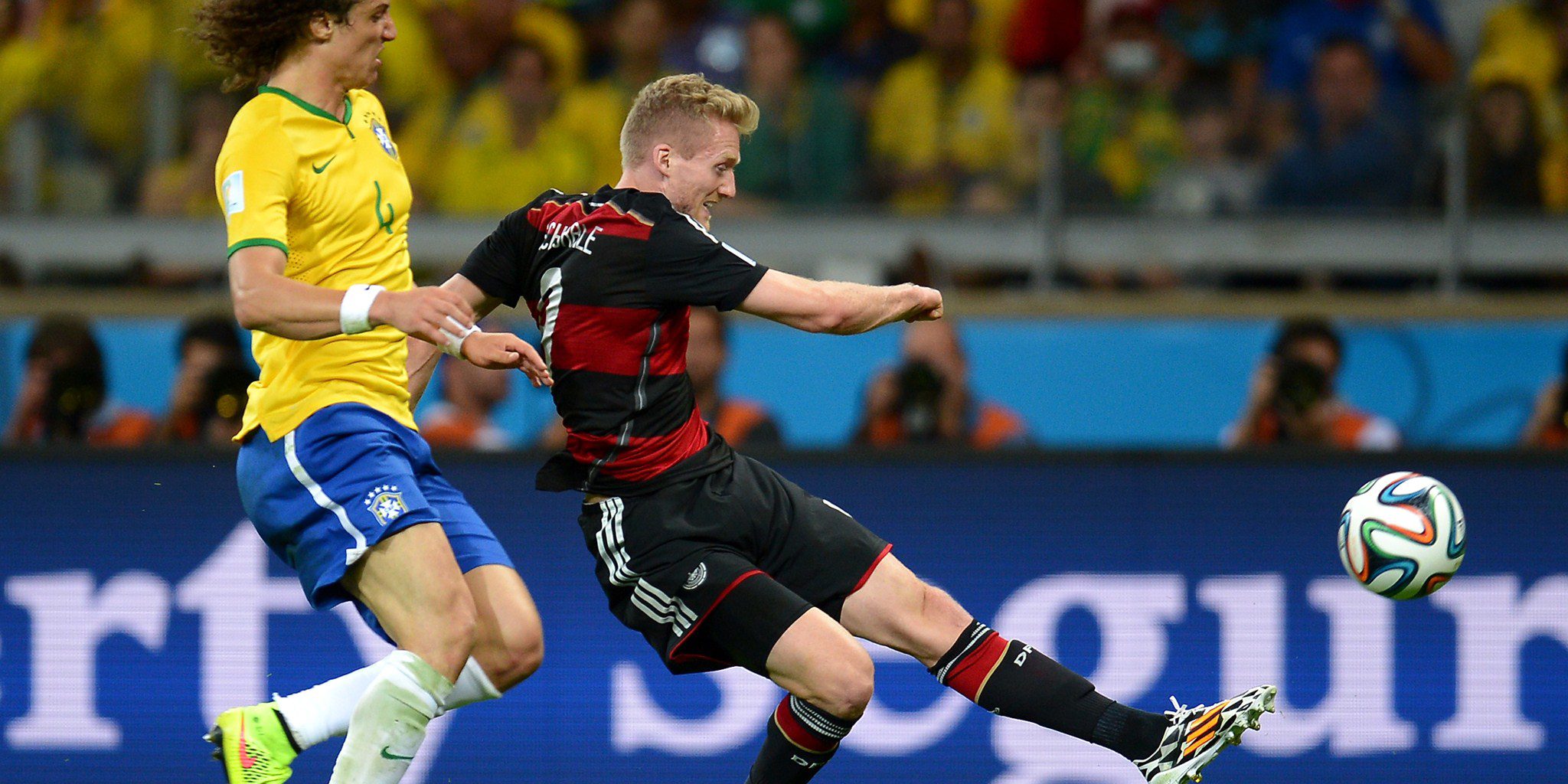 BELO HORIZONTE, BRAZIL – JULY 08: Andre Schuerrle of Germany scores his team’s seventh goal during the 2014 FIFA World Cup Brazil Semi Final match between Brazil and Germany at Estadio Mineirao on July 8, 2014 in Belo Horizonte, Brazil. (Photo by Lars Baron – FIFA/FIFA via Getty Images)