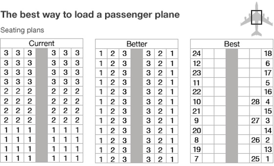 El proceso suele ser siempre el mismo: al llegar a clase turista primero acceden las personas cuyos asientos están situados en la cola del avión y después las que se sientan en las filas delanteras. Lo cual, sostienen muchos, no tiene sentido. Más aún, tal y como se indica en una investigación de Boeing, recogida por Business Week en abril pasado, embarcar en 1998 era la mitad de lento que en 1970. En el estudio, ya antiguo, se indicaba que la tendencia hacia la ralentización y las esperas a la hora de tomar un avión iba a convertirse en habitual. A menos, claro, que se desarrollasen nuevas herramientas y protocolos para evitarlo.