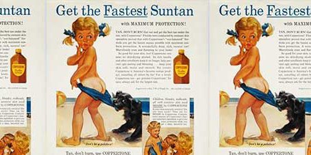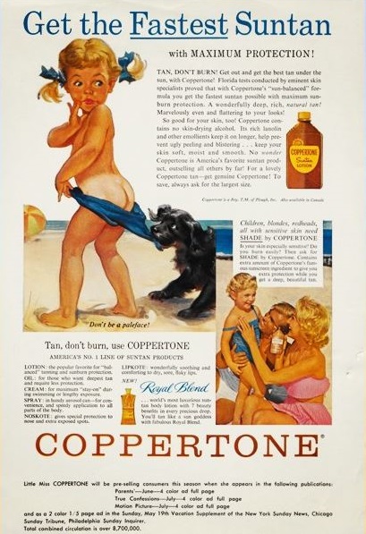 Uno de los anuncios más célebres es el de la marca de bronceadores Coppertone que data de 1953 donde se muestra –en la estética publicitaria de entonces– a una niña pequeña y un perrito que le jala la parte baja de su traje de baño para mostrar en forma inocente la efectividad y rapidez con la que las personas pueden adquirir un tono dorado en la piel; 10 años después se repetiría este anuncio para la televisión con una Jodie Foster de apenas 3 años replicando la misma escena y aumentando las ventas de la marca a cifras astronómicas; todo por el poder de una imagen. Con el paso del tiempo ésta campaña sería asociada, no tanto con el producto sino con mar, arena y sol. Hasta ahora, donde una sana parodia termina siendo una censura.