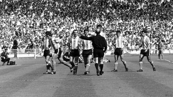 En un tenso partido disputado en Wembley el árbitro alemán Rudolf Kreitlein expulsó al capitán albiceleste Antonio Rattín sin aparente razón luego de que el jugador le reclamara una de sus decisiones.