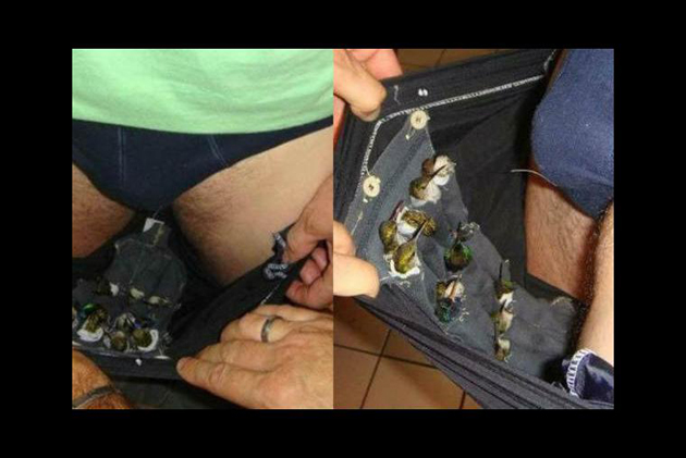 Un holandés fue capturado tratando de contrabandear más de una docena de colibríes ¡dentro de sus pantalones! Las aves estaban escondidas en bolsas especiales cosidas dentro de sus ropas, envueltas individualmente en tela dentro del pantalón del individuo.