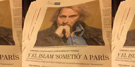Él y unos cuantos escritores más se solapan, a pesar de sus diferencias, describiendo una Francia contemporánea que a mí me parece esencialmente fantasiosa, en la que la amenaza del islam se cierne sobre la sociedad francesa y es uno de sus elementos principales. En la trama de su novela, me parece a mí, acepta esto como premisa y promociona la misma descripción de la Francia contemporánea que encontramos en el trabajo de esos intelectuales hoy.