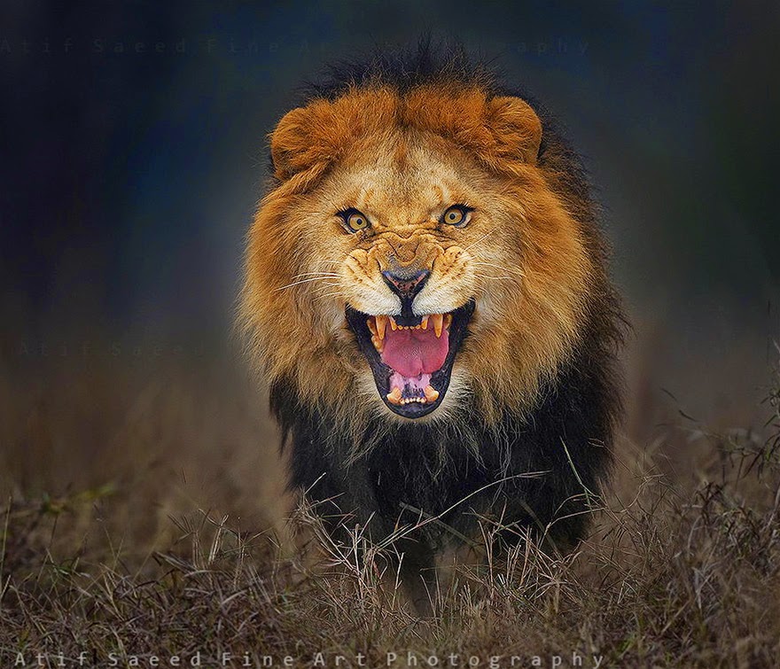 El fotógrafo pakistaní Atif Saeed no tuvo reparos en acercarse mucho más de lo recomendado a un león y captó un aterrador gesto del ‘rey de la selva’ dirigido hacia él antes de ser perseguido y casi convertido en su presa.