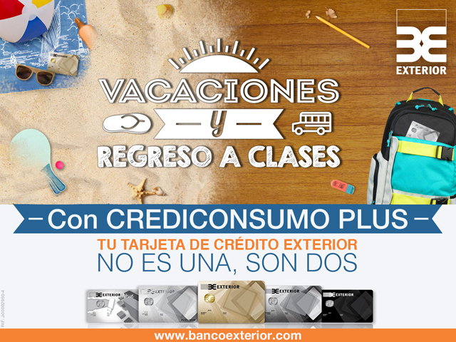 “Por eso hacemos hincapié en nuestra campaña de vacaciones y regreso a clases que con Crediconsumo Plus, la Tarjeta de Crédito Exterior no es una, sino dos, porque el cliente tiene dos líneas de crédito”, señala.