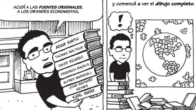 Y sí, el autor se propuso en este cómic explicar de una manera pedagógica la historia del pensamiento económico y el funcionamiento de la economía en sí misma.