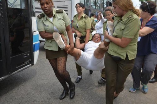 Barack Obama y Raúl Castro se reunirán este lunes y después Obama se entrevistará con miembros de la disidencia antes de abandonar la isla. Opositores como la conocida bloguera, Yoani Sánchez, denuncian un incremento de las detenciones pocas horas antes de la llegada a la isla de tan especial invitado. Unas cincuenta Damas de Blanco y otros opositores como el grafitero El Sexto o Antonio González Rodiles fueron arrestados el domingo en La Habana tras la habitual marcha dominical del grupo disidente femenino.