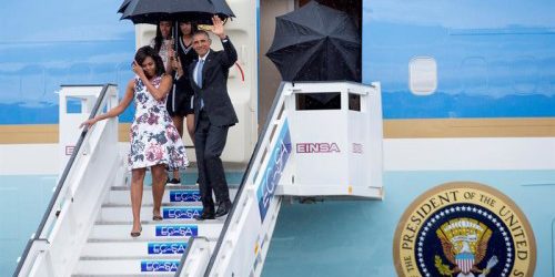 Una imagen histórica, Barack Obama en La Habana. La última vez que un Presidente estadounidense en activo visitó Cuba fue hace casi 90 años. Esta visita de Estado es crucial en el deshielo entre Estados Unidos y Cuba. Obama- que viaja acompañado de su mujer, sus dos hijas y su suegra- se quedará hasta el martes. Las primeras horas en suelo cubano, Obama y su familia las han pasado caminando por La Habana Vieja, a pesar de la lluvia. Y una visita a la recién inaugurada embajada de su país en el Malecón.
