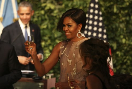La primera dama de EE.UU. Michelle Obama brinda durante una cena de gala ofrecida al presidente de EE.UU. Barack Obama por el presidente de Argentina Mauricio . Foto: EFE/David Fernández