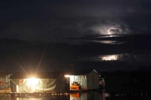 El guía turístico Alan Highton, en cambio, instaló hace décadas un campamento sobre el agua del lago en la localidad de Ologá donde recibe a los turistas que quieren vivir «la experiencia del relámpago».