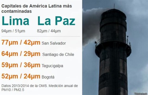 Según el reciente informe de la Organización Mundial de la Salud sobre la polución del aire, las principales ciudades de América Latina -como Ciudad de México, Buenos Aires, Bogotá, Caracas, Lima o Sao Paulo- tienen índices de material particulado (PM) muy por encima de los valores recomendados.