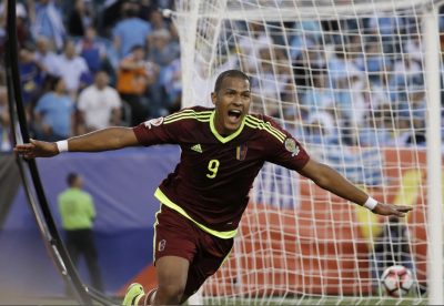 El centrodelantero Salomón Rondón a los 36 minutos marcó el tanto de la histórica victoria de Venezuela sobre Uruguay, su primera ante la Celeste por Copa América con la que antes había perdido seis partidos e igualados dos.