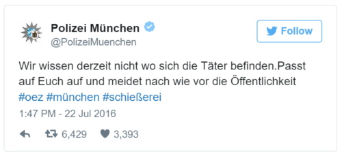 18:00 GMT Policía de Múnich: «Por el momento no sabemos dónde están los sospechosos. Tengan cuidado y eviten salir a lugares públicos».