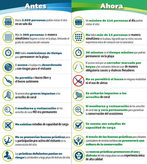 La apertura será bajo una estricta regulación para evitar volver a dañar el ecosistema marino. A la Playa del Amor, el principal atractivo turístico, solo podrán entrar grupos de 15 personas y solo podrán estar en ella 30 minutos. Al día las autoridades permitirán un aforo máximo de 116 personas en la playa.