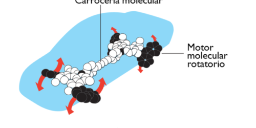 El holandés Bernard Feringa (Barger-Compascuum, 1951), de la Universidad de Groninga, fue el primero que construyó un motor molecular, prosigue la nota. En 1999, logró una pala de rotor molecular que giraba continuamente en la misma dirección, cuando los científicos aportaban luz ultravioleta. «Utilizando motores moleculares, ha rotado cilindros de vidrio que son 10.000 veces más grandes que el motor y también ha diseñado un nanocoche», detalla la Academia. Este nanocoche, fabricado en 2011 por el equipo de Feringa, consiste en cuatro ruedas formadas por moléculas que giran, unidas a una especie de chasis molecular.