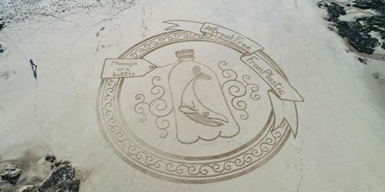 Artistas han mostrado su talento creativo en playas de toda Europa para llamar la atención sobre la contaminación del mar con plásticos, dibujando obras de arte de gran escala en la arena para poner de relieve el problema.