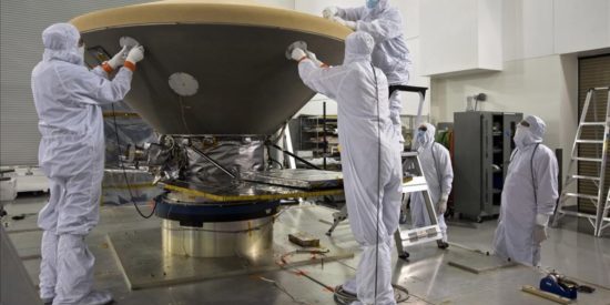 Montaje del módulo InSight de la NASA en la basea aérea de Vandenberg, en California (EEUU). / DANIEL HERRERA / AP