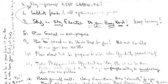 Escrita a mano con una letra casi ilegible, Jenrette dejó sobre su escritorio una lista con 24 reglas para, según él, triunfar, no solo en los negocios, sino en la vida.