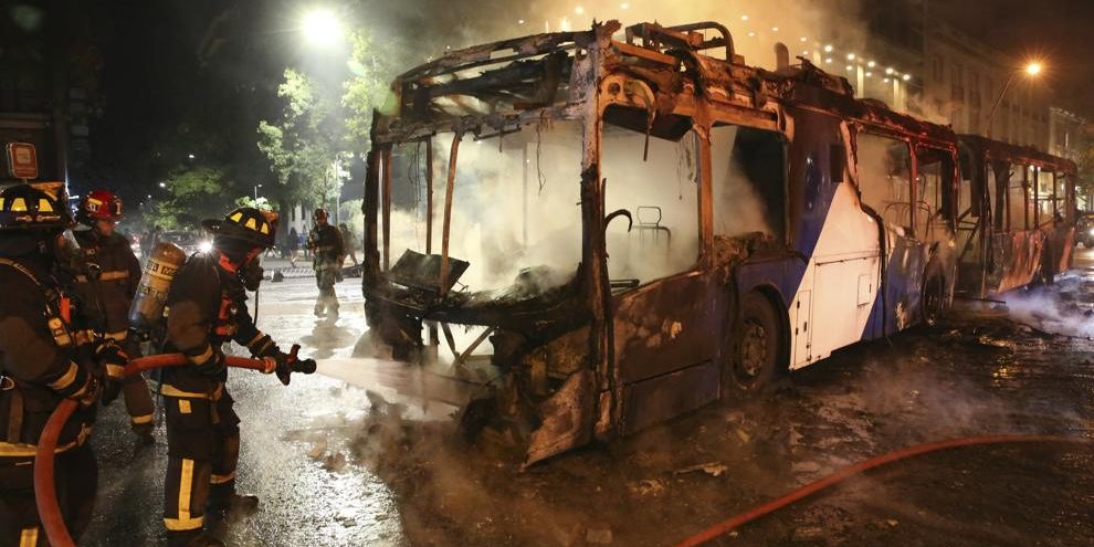 El reporte inicial de los disturbios del viernes fue de 308 detenidos y 167 personas heridas, de las que 11 son civiles y agentes de Carabineros, cinco de ellos en estado de gravedad. Asimismo, 41 de las casi 140 estaciones del Metro de Santiago y 16 autobuses urbanos fueron quemados o siniestrados.
