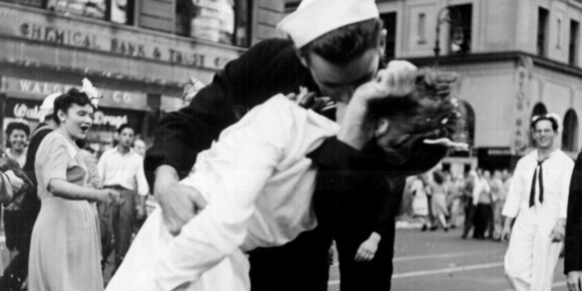 Esa donde aparece un marinero norteamericano besando a una enfermera, en el Time Square, el 14 de agosto de 1945. Justo la fecha en que se declaró la victoria de Estados Unidos sobre Japón durante la segunda guerra mundial.