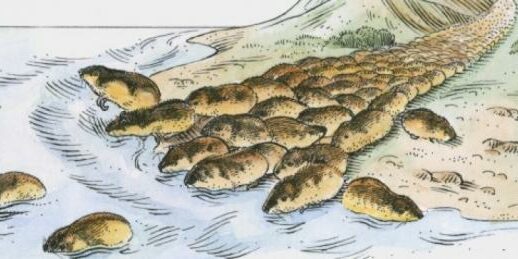 Esta especie tiene la particularidad de emprender repentinamente migraciones colectivas sin motivo aparente que terminan con un suicidio masivo en las aguas del mar.