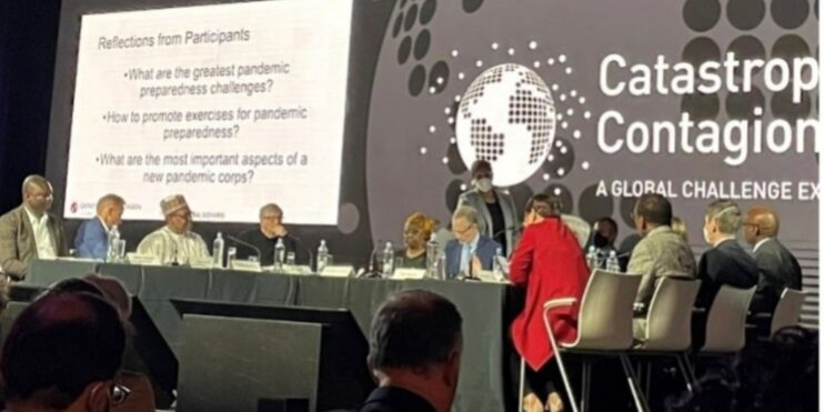 Bill Gates y altos funcionarios de salud pública de Angola, Alemania, India, Liberia, Nigeria y Ruanda moderaron las discusiones durante la simulación.