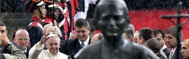 Tras la misa con los obispos, sacerdotes, religiosos y seminaristas presentes en la JMJ, celebrada a las 9.00 de la mañana hora local en la catedral de Río de Janeiro, el Papa se trasladó, en medio de otro baño de multitudes, hasta el Teatro Municipal de la ciudad, donde estaba previsto un encuentro con la clase dirigente brasileña.