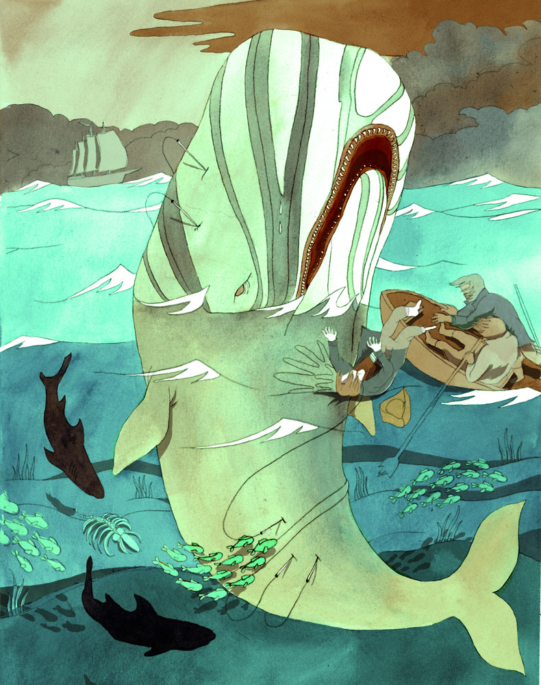 La transformación de Moby Dick en un título juvenil explica la larga nómina de dibujantes que han recreado la épica persecución de Ahab. Una adaptación que obliga a sacrificar su turbia carga de profundidad. Cualquier lectura es posible. Como la de la construcción nacional que plantea la catedrática de Literatura Rosa María Burillo: “Se trata de la epopeya de la nación americana que busca en el mar el mundo del Oeste”. O la freudiana, que propone el escritor José Carlos Somoza, para quien Ahab es “el tullido marinero lleno de sed de venganza, que no es otro que el zoófilo más colosal y trágico que ha inventado la literatura”. Somoza, antes de caer trastornado por la literatura, se dedicaba a la psiquiatría.