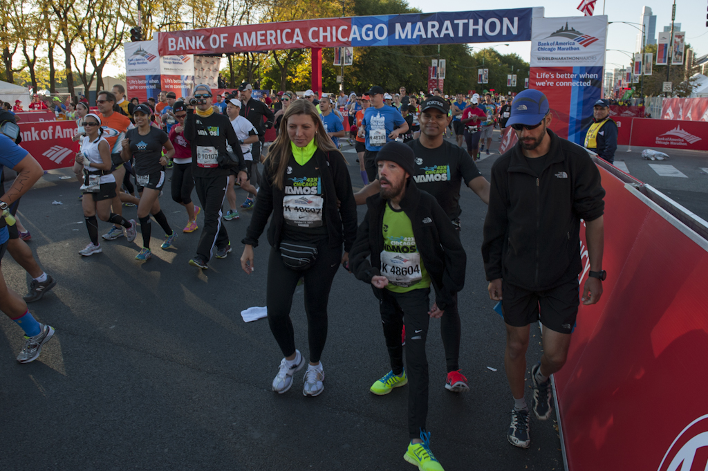 Venezolanos residentes en la llamada ciudad de los vientos le acompañaron y auparon desde el kilómetro 40 hasta una vez finalizada la prueba, plenando la madrugada de Chicago con mucha alegría. La policía de Chicago escoltó al atleta en los últimos kilómetros de la prueba y el oficial Holmes le colocó la medalla que él a su vez entregó a su padre como lo hizo también en Nueva York y Berlín.