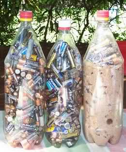 Se puede hacer de una manera más sencilla llenando la botella con pilas y luego con agua y enterrándolas. De esa manera el agua absorbe el ácido que la pila larga, y no contamina.